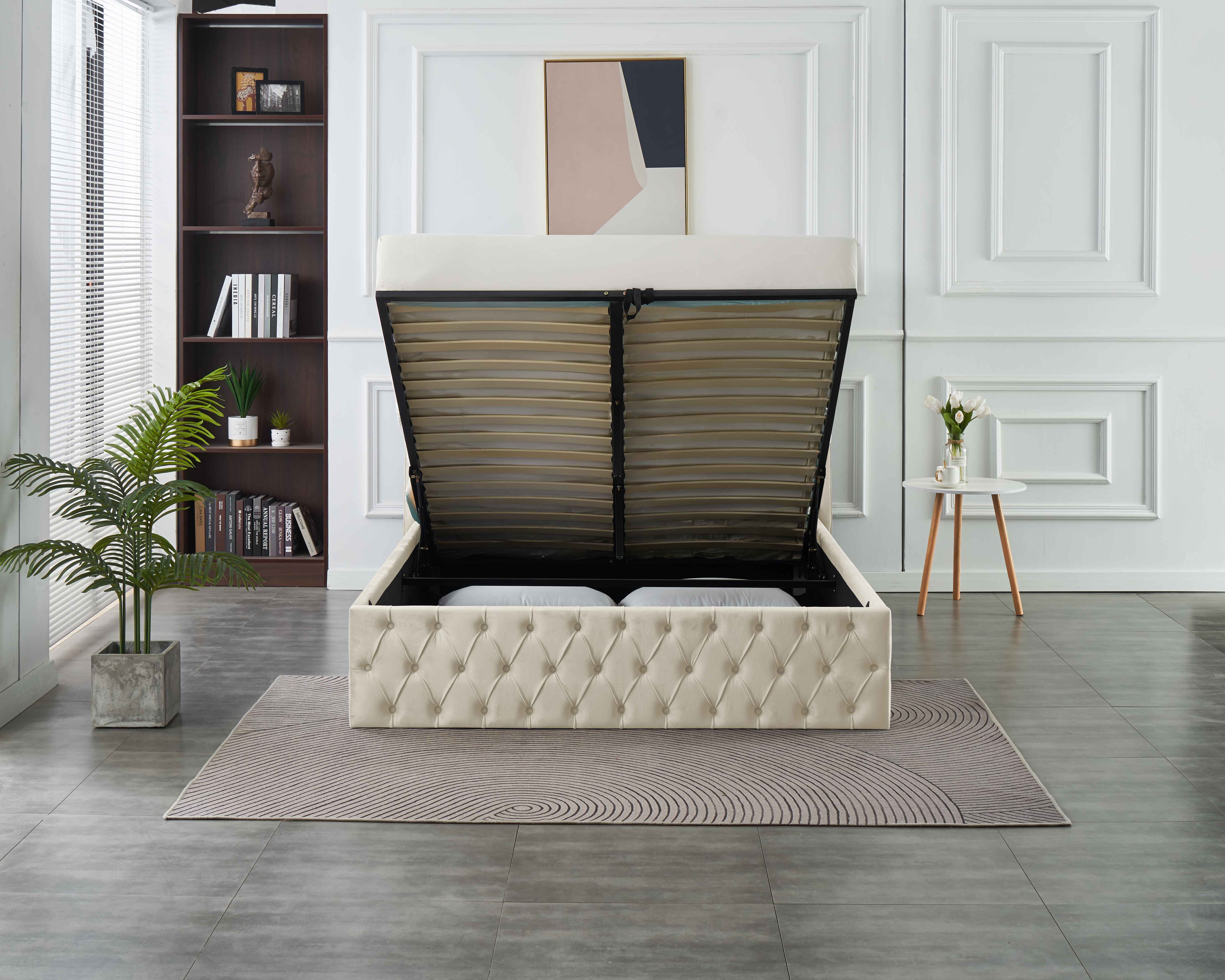 With a smooth and efficient lift-up mechanism, this bed offers generous under-bed storage, providing a practical solution for keeping your bedroom organized and free from clutter.