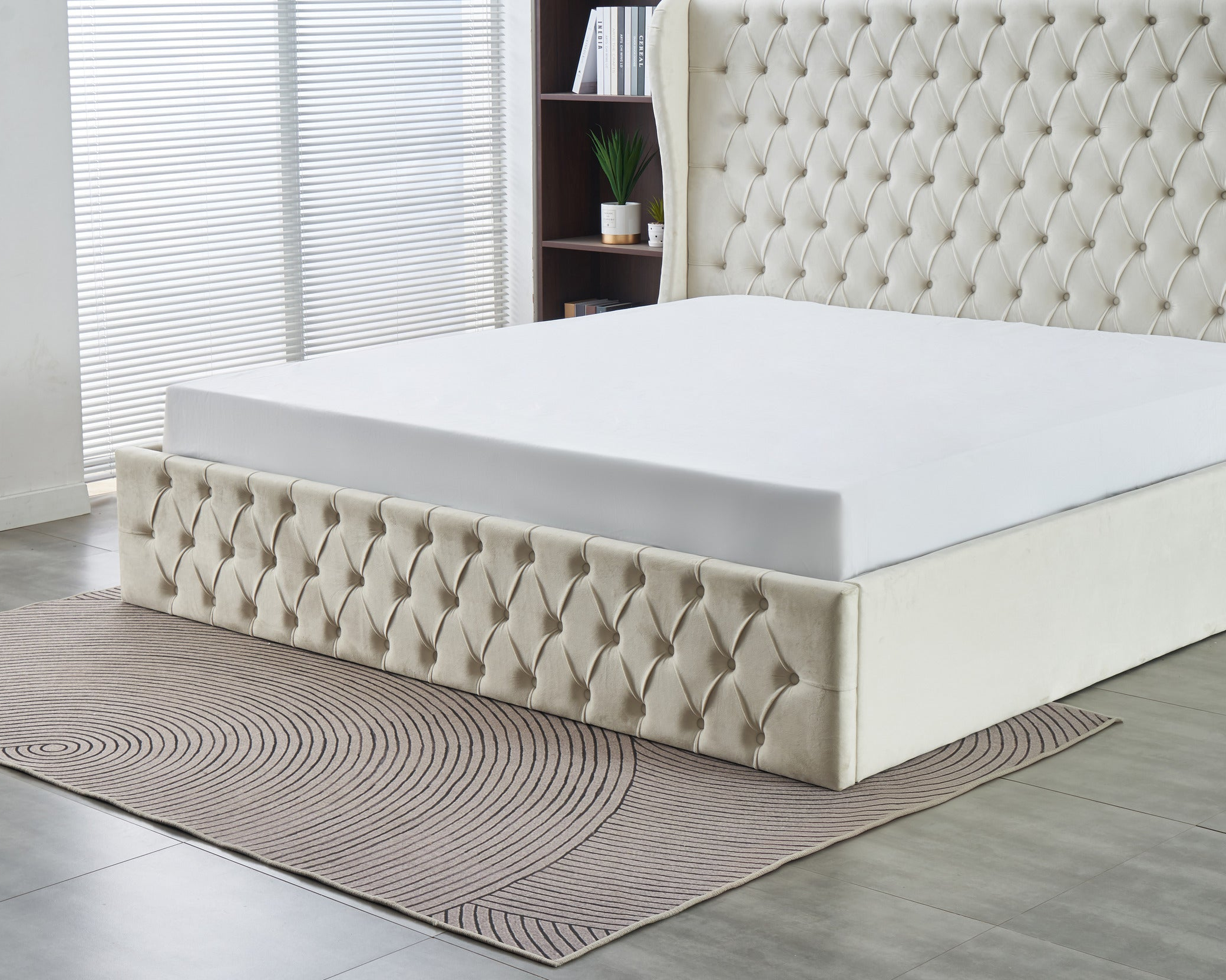 Alaya Lift-up Storage Bed- Beige